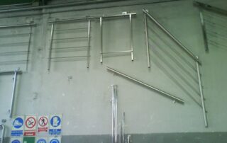 Diseñamos y fabricamos puertas, escaparates, cierres enrollables y carpintería en acero inoxidable con acabados duraderos y modernos. También realizamos mobiliario a medida para hostelería y uso particular, como estanterías, mesas de trabajo, encimeras y carros. Completamos nuestros servicios con barandillas que combinan acero con vidrio, tensores o barrotes, adaptadas a cada entorno.